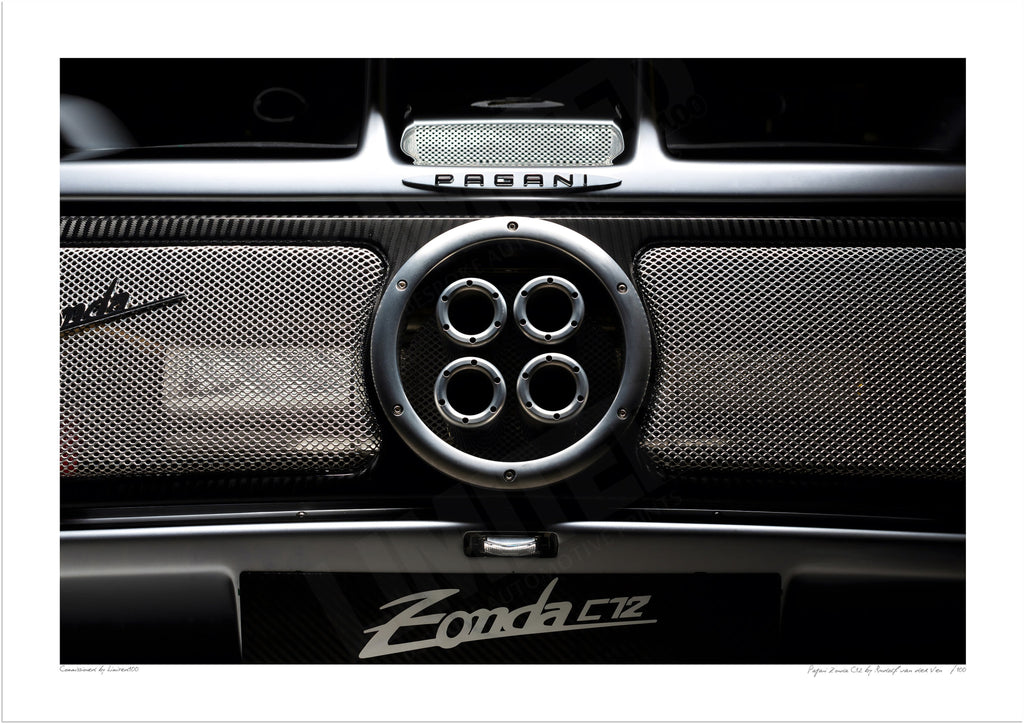 The Zonda’s four-exhaust arrangement, perched high and tight at the tail in a perfect square, feels less like styling and more like a manifesto - engineering exposed, uncompromised, and theatrically honest in a way that only Horacio Pagani would dare, and a motif that would go on to define the marque.